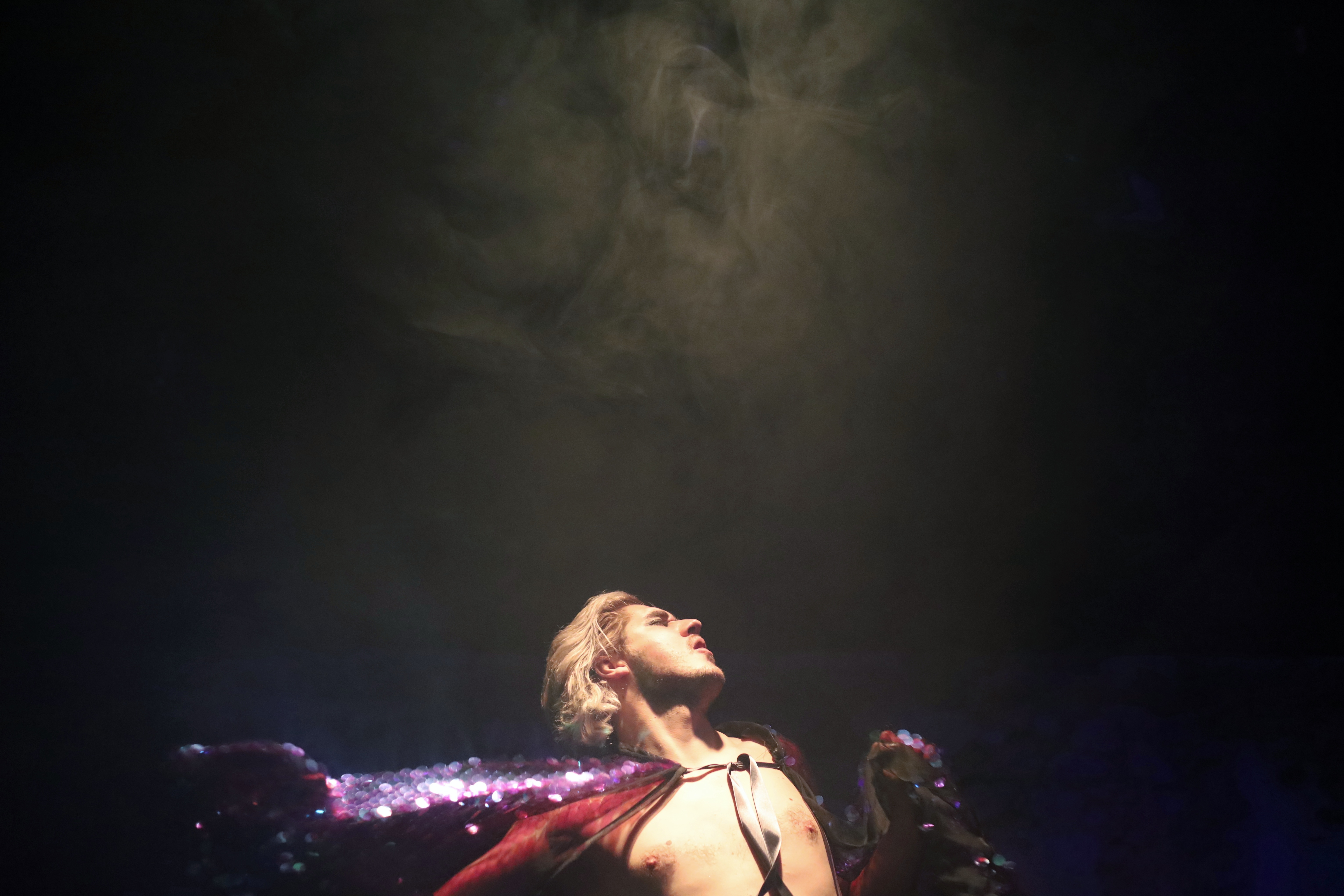 Infiltrating the city with wine and ecstasy, he calls upon all women to join his dancing rituals, but Pentheas, King of Thebes, refuses to recognise his divinity and condemns his worship, committing hubris... So a plan for vengeance is hatched.